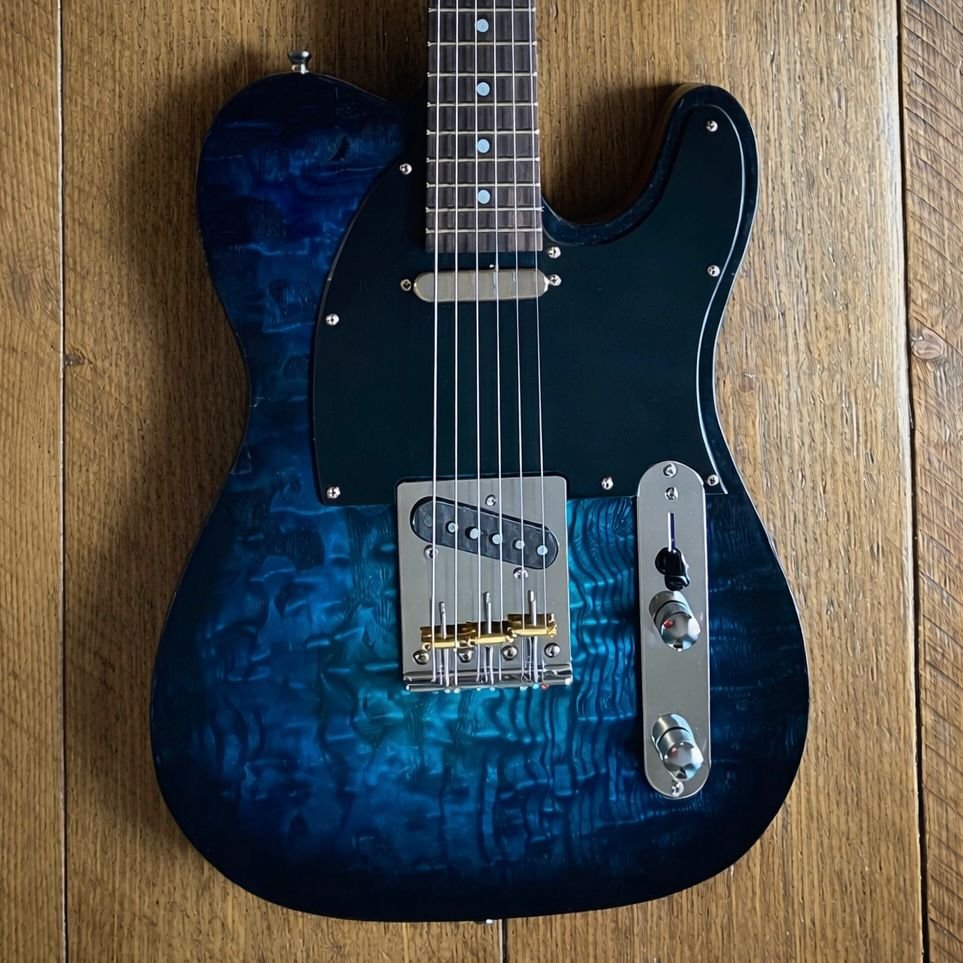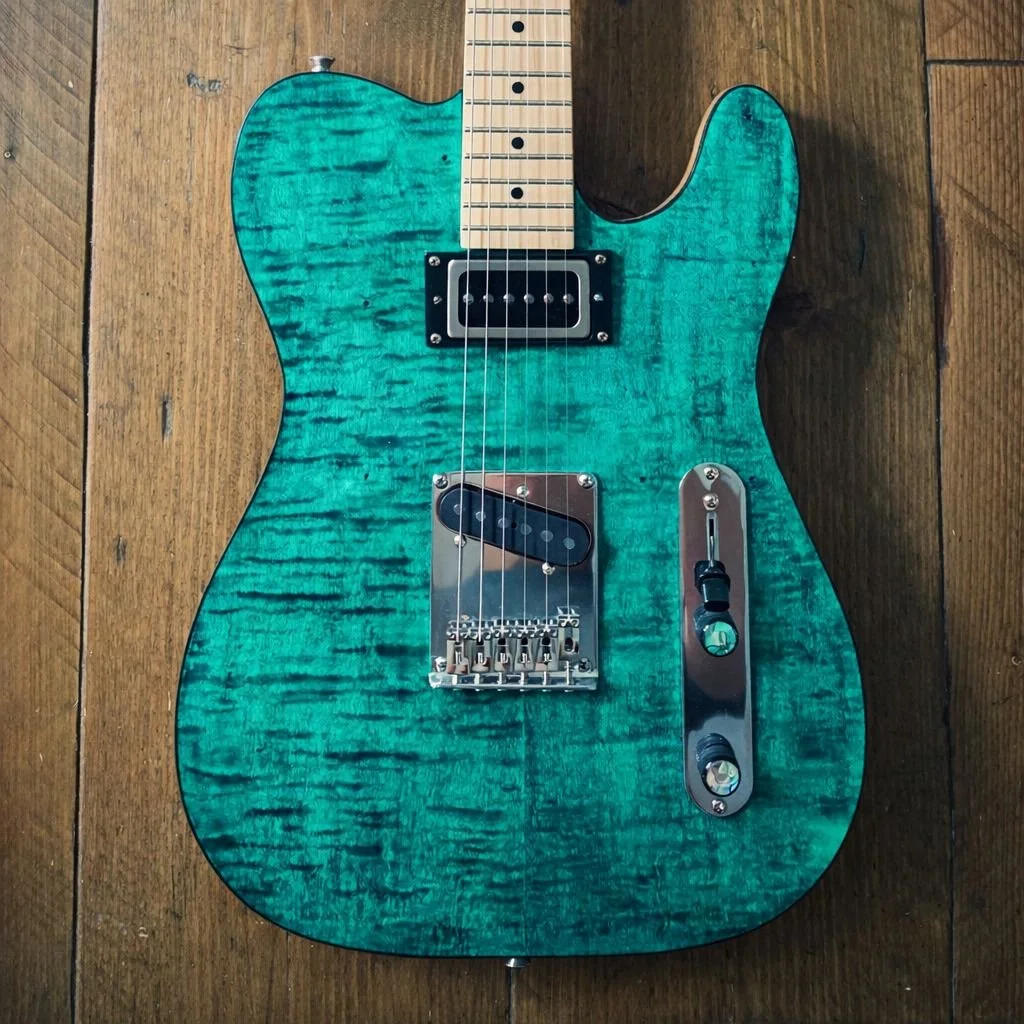 Other Shapes Green Flame Guitars based on more familiar forms View fullsize Quilted Chrome Aqua Burst
